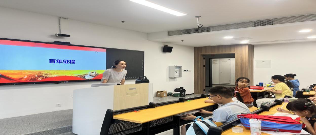 工会负责人侯老师亲自上阵,给孩子们讲述了中国近百年来的屈辱沧桑和奋斗史。从中国近代八国联军火烧圆明园到抗美援朝“打的一拳开,免得百拳来”,再到今天我们的“长征快递,送您上天,东风快递,送您上西天”。侯老师用诙谐幽默的语言让孩子们见证时代的发展,随着历史回顾的浸润直观感受新中国一路走来的不易,理解无数科学家和建设者们奉献一生的意义,激发孩子们好好学习,建设国家的情怀。