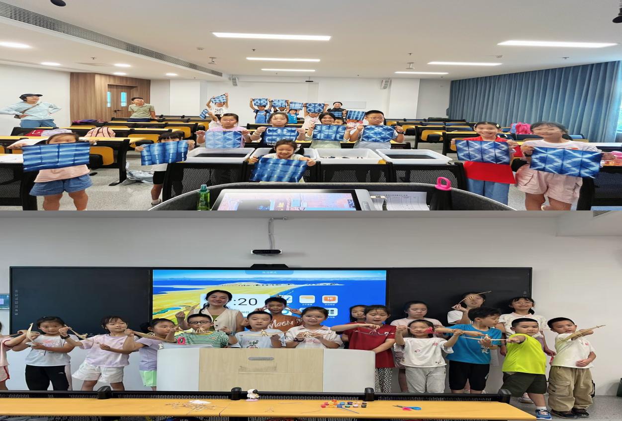 扎染课程让孩子们走进了神奇的色彩世界,感受这项非物质文化遗产的独特魅力。在染色环节,孩子们小心翼翼地将捆好的布放入染料中,看着白布慢慢染上颜色,脸上满是期待。等待颜色固定后,大家迫不及待地拆开绳子,当一个个独一无二的图案展现在眼前时,教室里充满了欢呼声。通过扎染课程,孩子们不仅了解了传统工艺知识,还在动手过程中提升了色彩搭配能力和审美能力。